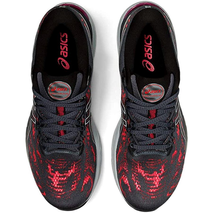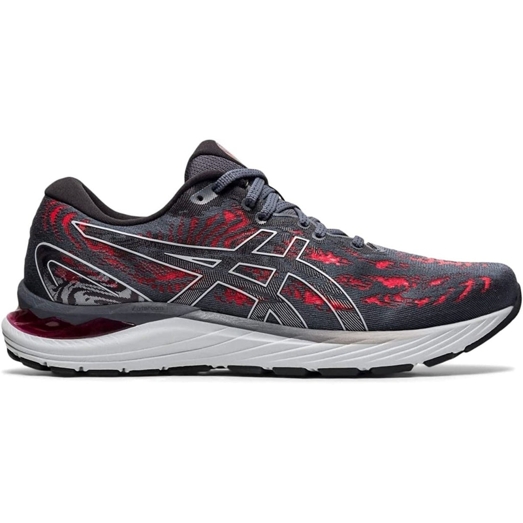 The GEL-CUMULUS® 23 shoe's focus is to provide an even smoother and softer ride while implementing gender tailored technology in the men's and women's models. Continuing to draw inspiration from cumulus clouds, we reimagined this neutral running shoe's upper and midsole formation by applying a more holistic design approach that adapts to the runner's anatomy in motion. Wrapping the foot with an even softer feel, the engineered mesh upper adds strategic support in targeted areas while leaving some of the fibers more open to improve breathability. The upper also works more closely with the midsole's movement, which creates a smoother stride from footstrike to toe-off. Additionally, the shoe's upper is made with recycled materials to reduce waste and carbon emissions. To improve cushioning and flexibility, we added a 3D SPACE CONSTRUCTION™ to the top layer of the midsole. This technology is implemented through a series of strategically planted pillars within the midsole, allowing runners to experience more compression in a specific area without reducing durability or stability. These pillar formations are tuned differently in the men's and women's models to address each gender's biomechanical data. By helping runners appropriately compress the foam during the landing phase of their stride, this shoe promotes a smoother ride and improves shock absorption. Lastly, a softer GEL® technology unit is positioned under the heel to improve cushioning while the FLYTEFOAM® midsole material helps create a smoother and more supportive ride.