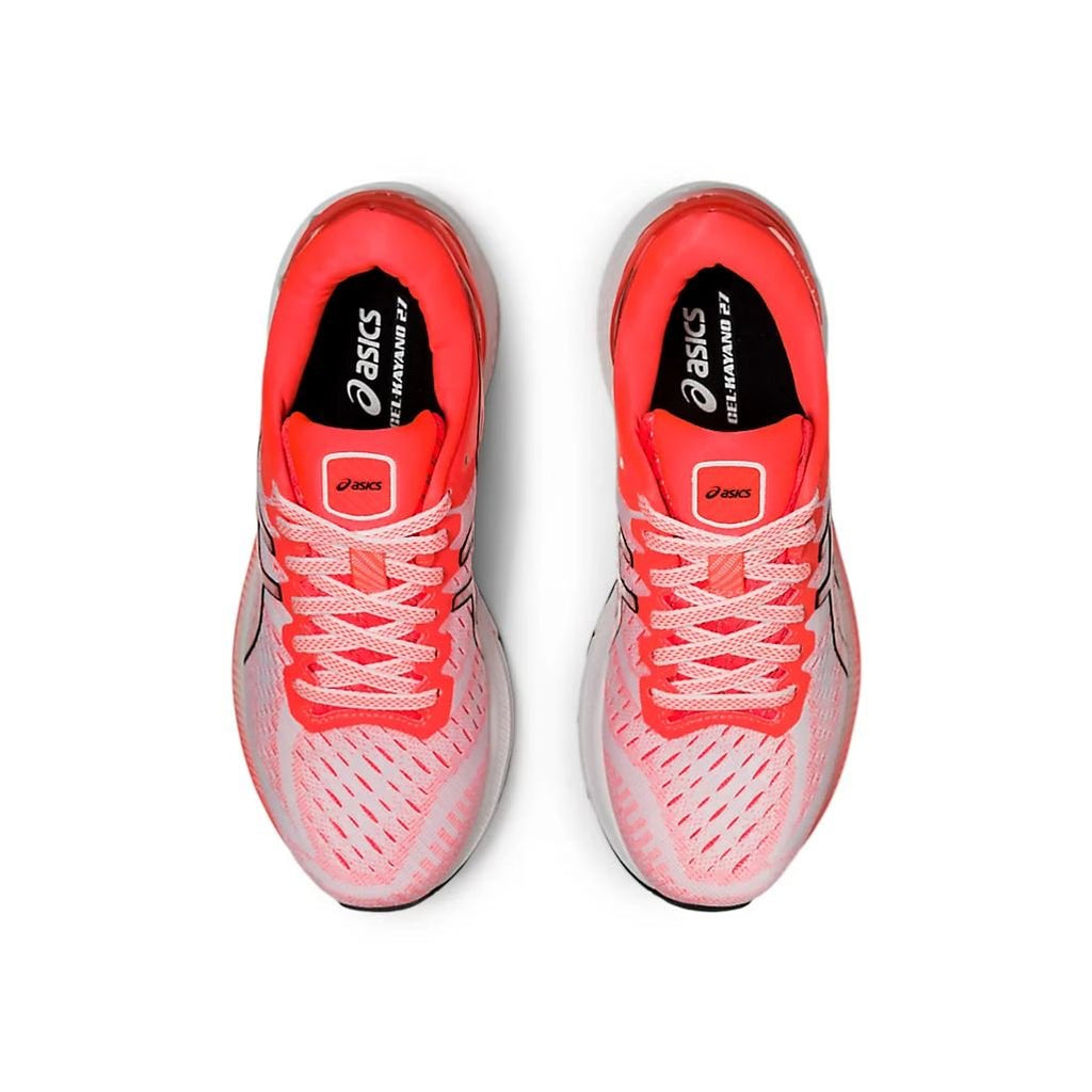 Enjoy excellent comfort and advanced support with the GEL-KAYANO® 27 TOKYO running shoe. Featuring a limited model offering, this iteration is displayed with a Sunrise Red colorway to celebrate the city of Tokyo and the country of Japan. At midstance, the foot should stop pronating and re-supinate for an efficient toe-off. This shoe also incorporates DYNAMIC DUOMAX® technology to help support the foot and increase stability for runners whose feet roll inward too much (overpronate). The midsole integrates SPACE TRUSSTIC™ technology, which provides stability and reduces the overall weight to help promote a smoother transition from footstrike to toe-off. This added stability is complemented by deeper forefoot flex grooves that create a smoother roll through toe-off, allowing the shoe to move more naturally with the foot. Lastly, a large section of reflective materials in the rearfoot helps keep runners visible when running in low-light conditions. The GEL-KAYANO® 27 TOKYO model is an excellent choice for both competitive and non-competitive runners looking for an everyday trainer that combines comfort with support.