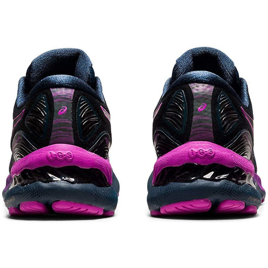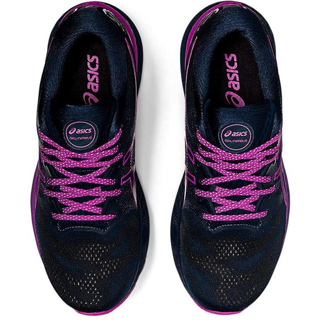 The GEL-NIMBUS® 23 LITE-SHOW™ running shoe continues to offer excellent comfort and long-run impact absorption. Its improved stability provides a more balanced stride that's followed by smoother transitions. This version also incorporates reflective accents throughout the design, which allow you to stay more visible in low-light conditions. Constructed with comfort and breathability in mind, the upper features a softer engineered mesh design for long runs. Engineered eyelet shaping helps the upper move more naturally with the foot, while a stretchy midfoot panel appropriately hugs the foot to generate better flexibility. Additionally, the shoe's upper is made with recycled materials to reduce waste and carbon emissions. Providing the runner with excellent shock absorption and softness, the GEL-NIMBUS® 23 LITE-SHOW™ delivers more compression in the heel thanks to its softer GEL® technology cushioning unit and contoured design lines. Also, a gender-specific TRUSSTIC™ device provides an articulated amount of support in the right direction for men and women to help generate a smooth transition. Under the toe, the inclusion of gender-specific pillars help cushion the body and help runners experience a softer feel. Simultaneously, the OrthoLite™ X-55 sockliner equips runners with a forgiving, yet responsive stride. The components of the GEL-NIMBUS® 23 LITE-SHOW™ shoe help increase the softness without forgoing the integrity of the shoe's ride. Our 23rd version of the GEL-NIMBUS® continues to make advancements within the lineage by offering improved support and comfort for distance runners.